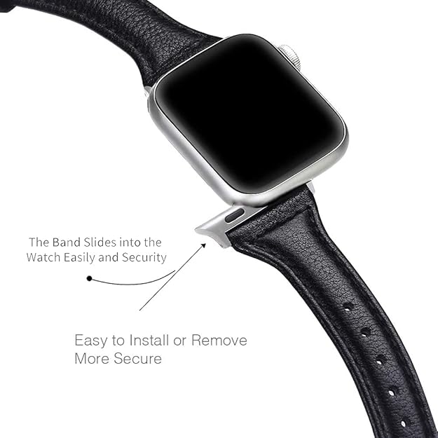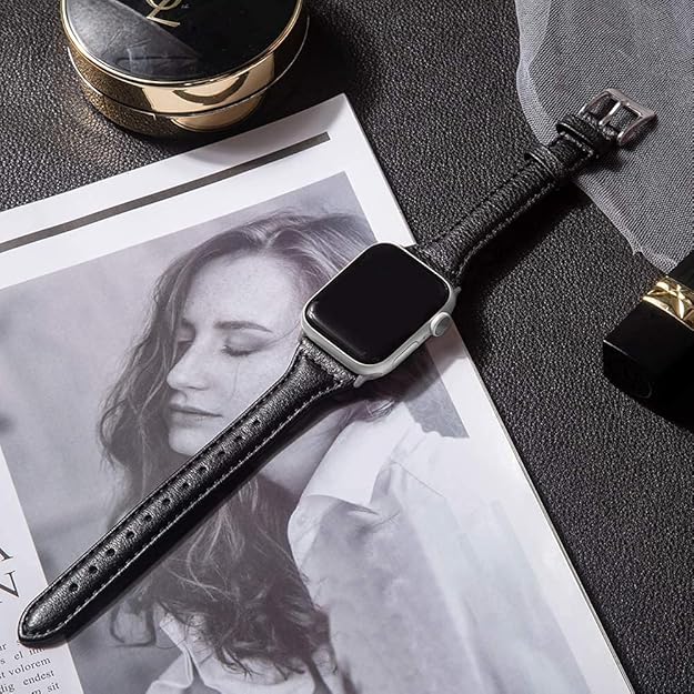 LONDON ALLEY Leather Watch Strap for Women/Girls Compatible with Apple Watch Series 9 | 8 | 7 | 6 | 5 | 4 | 3 | 2 | 1 | SE, Top Grain Slim Leather Strap.